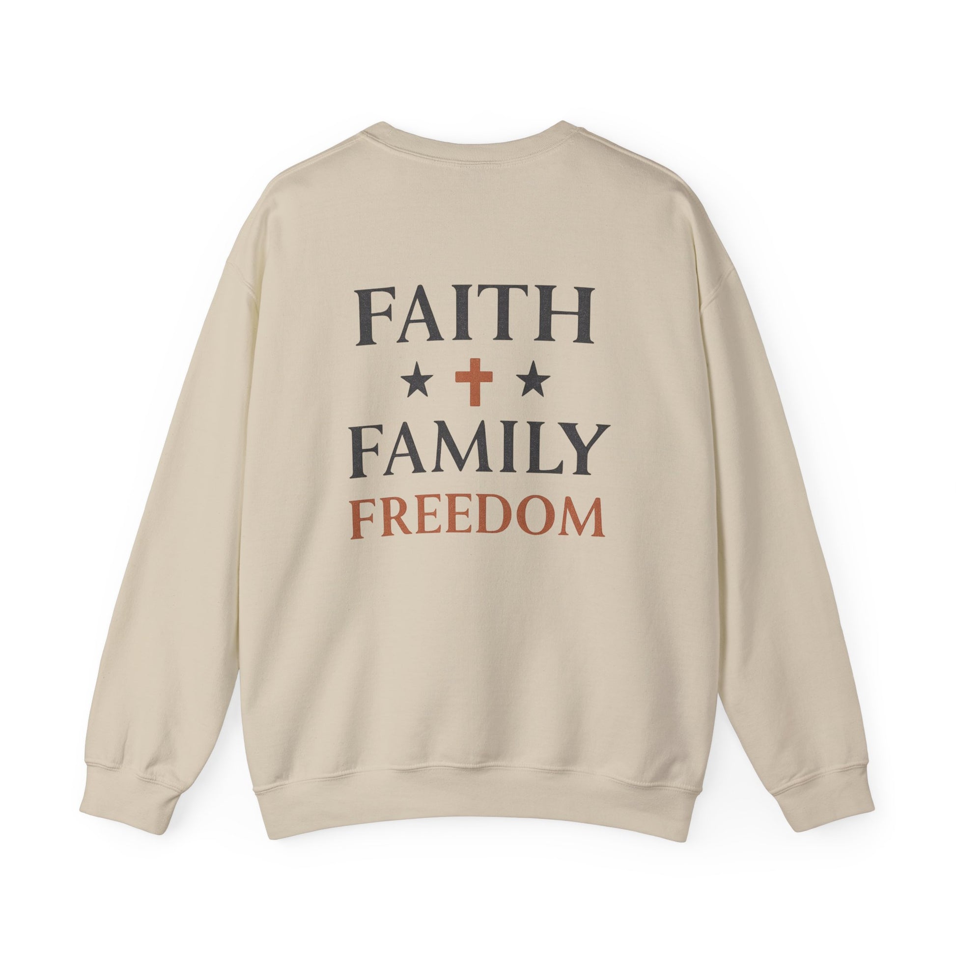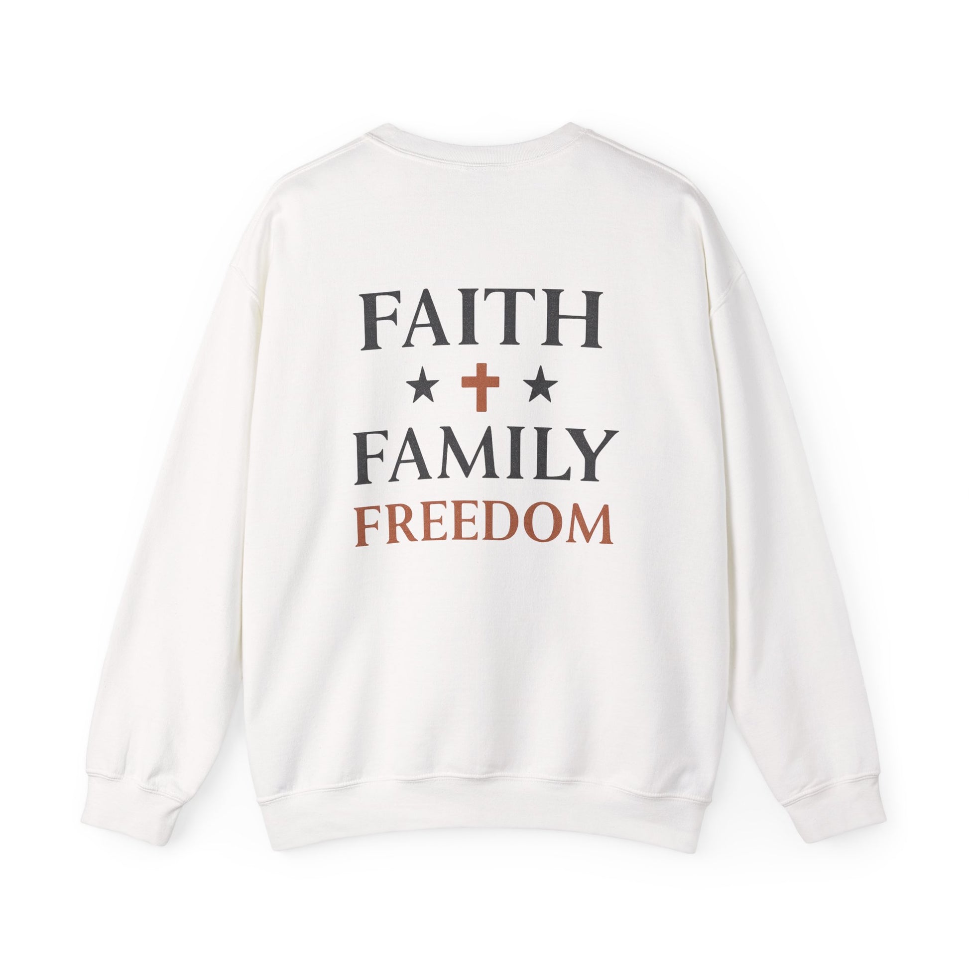Faith Family Freedom Sweatshirt, Cozy Unisex Crewneck, Ideal Gift for Holidays, Casual Everyday Wear, Religious Apparel