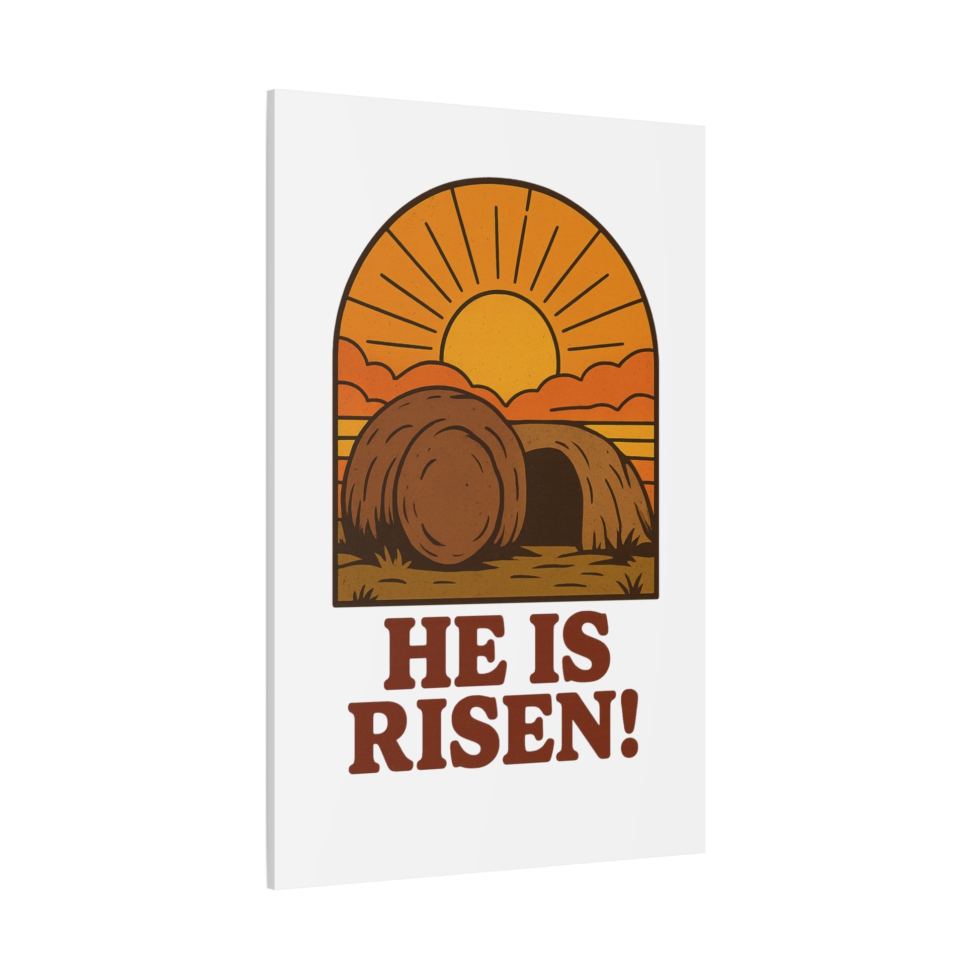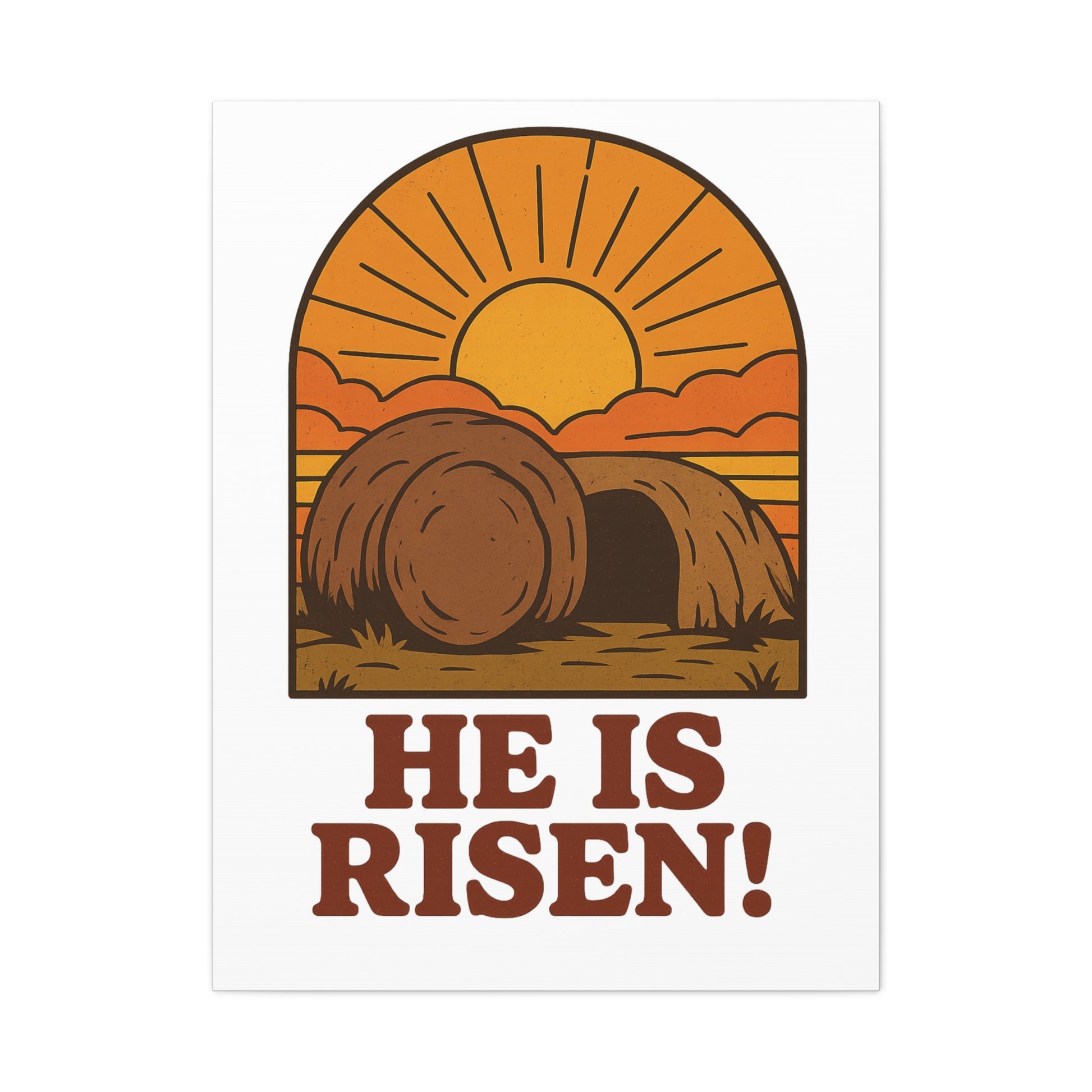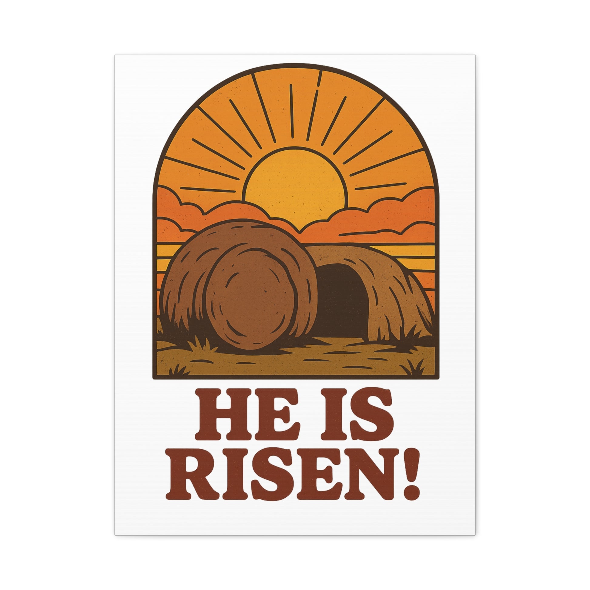 Celebrate the hope of resurrection with our He Is Risen wall art featuring the Empty Tomb bathed in sunrise light. This vintage-inspired Christian illustration captures the triumph of Christ over death — a powerful reminder that light always follows darkness. Perfect for Easter, prayer spaces, or everyday encouragement, this artwork fills your home with peace and renewed faith.