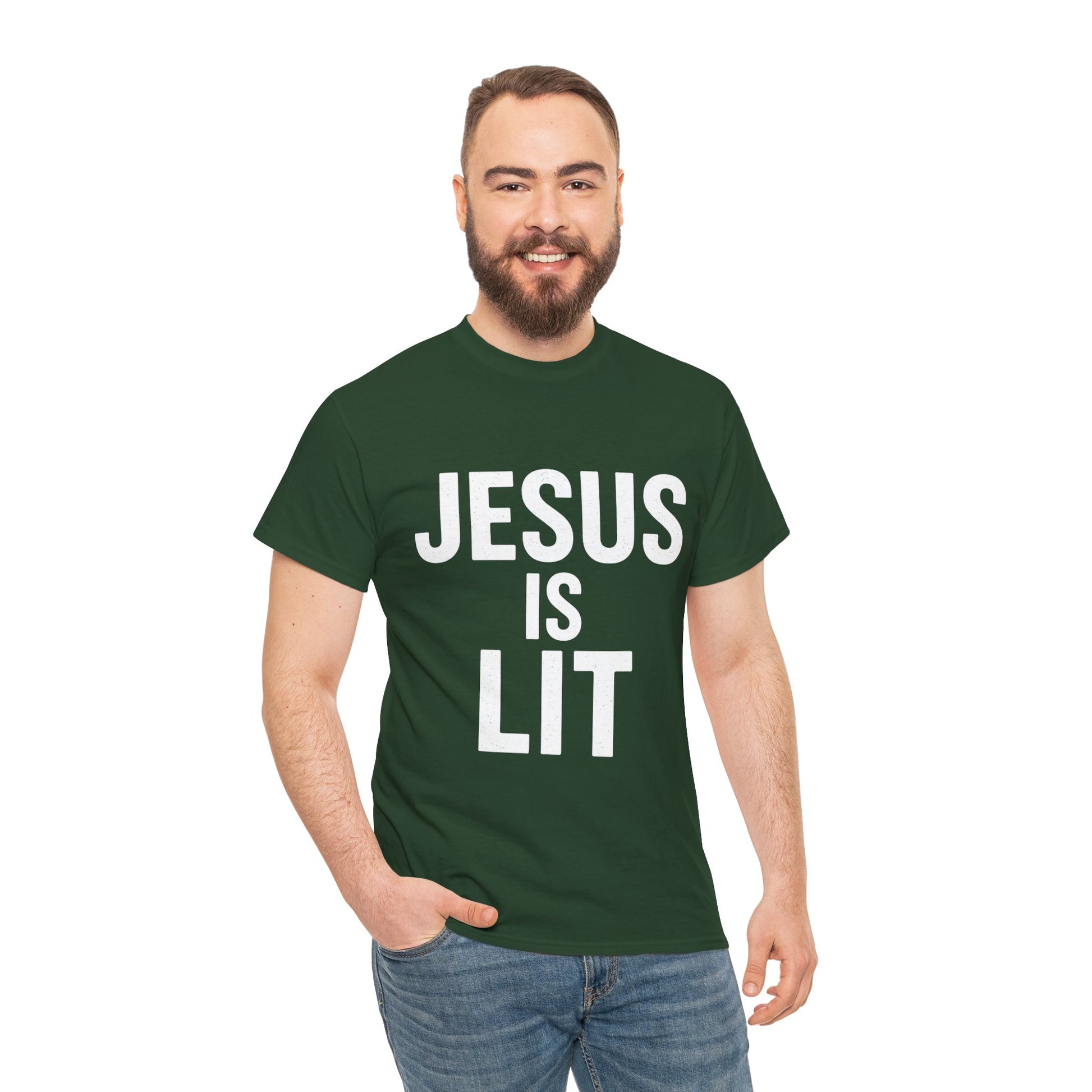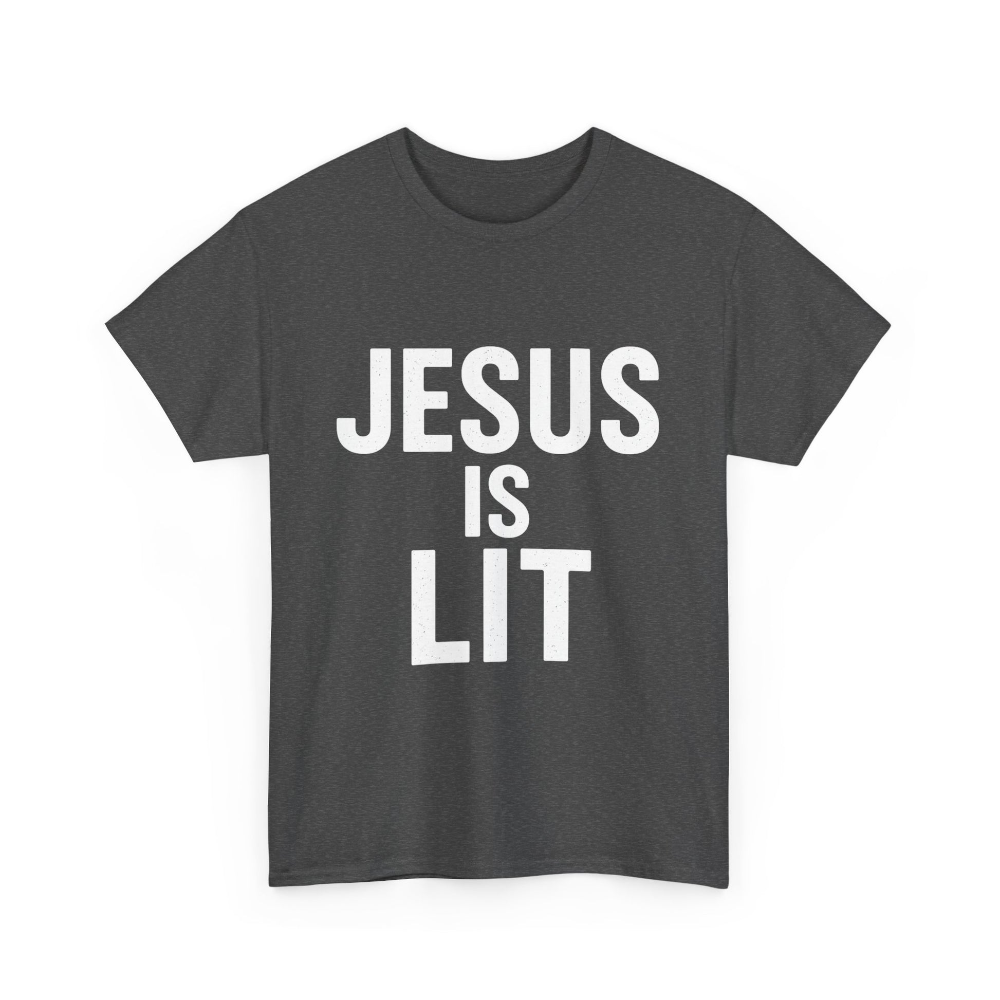 Jesus Is Lit Heavy Cotton Tee | Bold Christian Streetwear