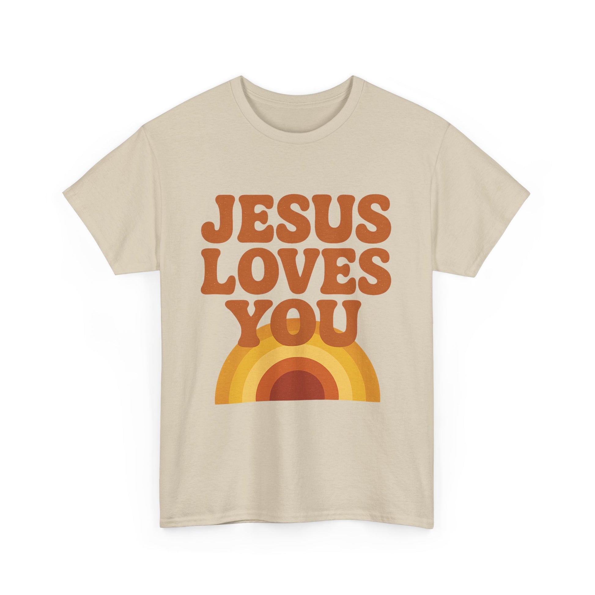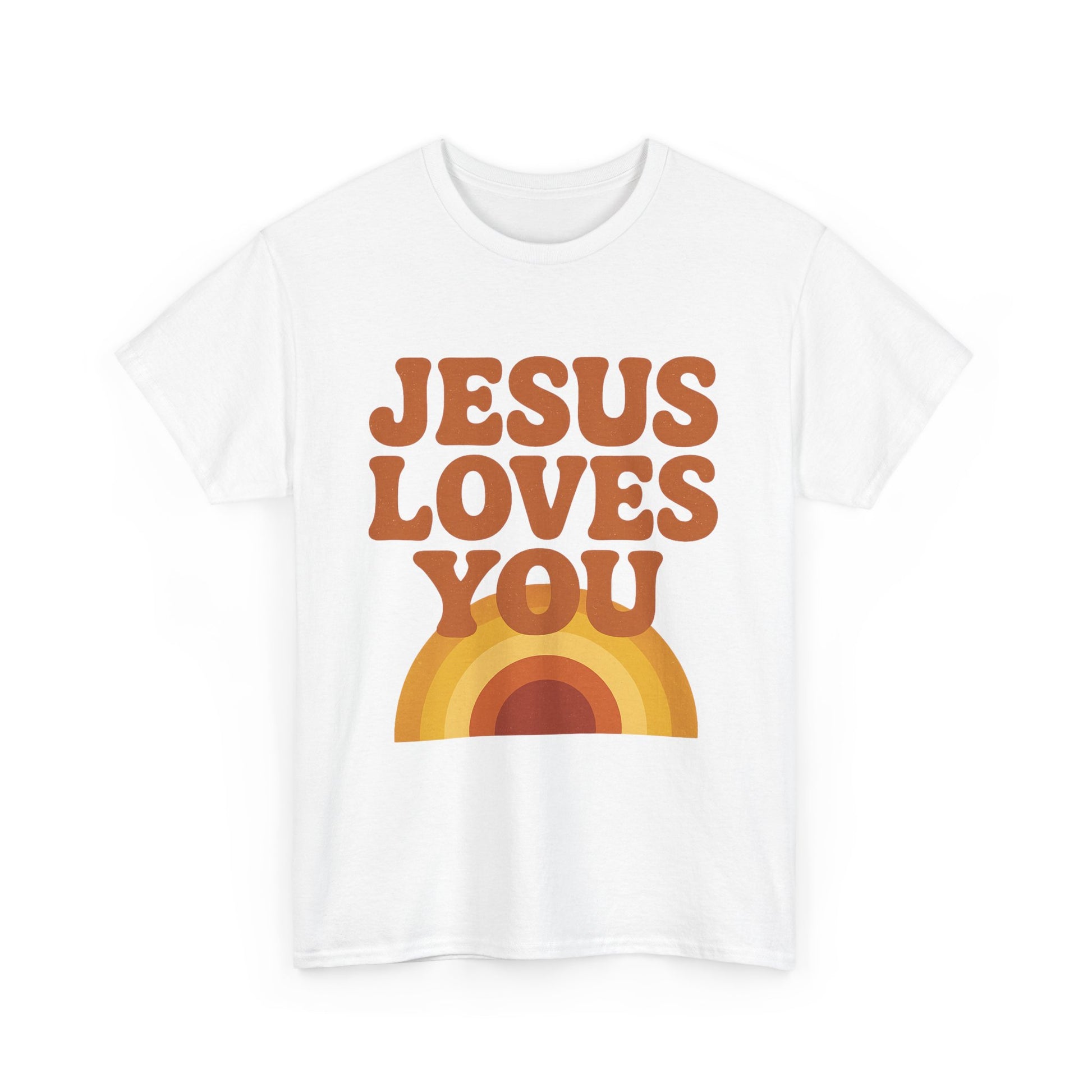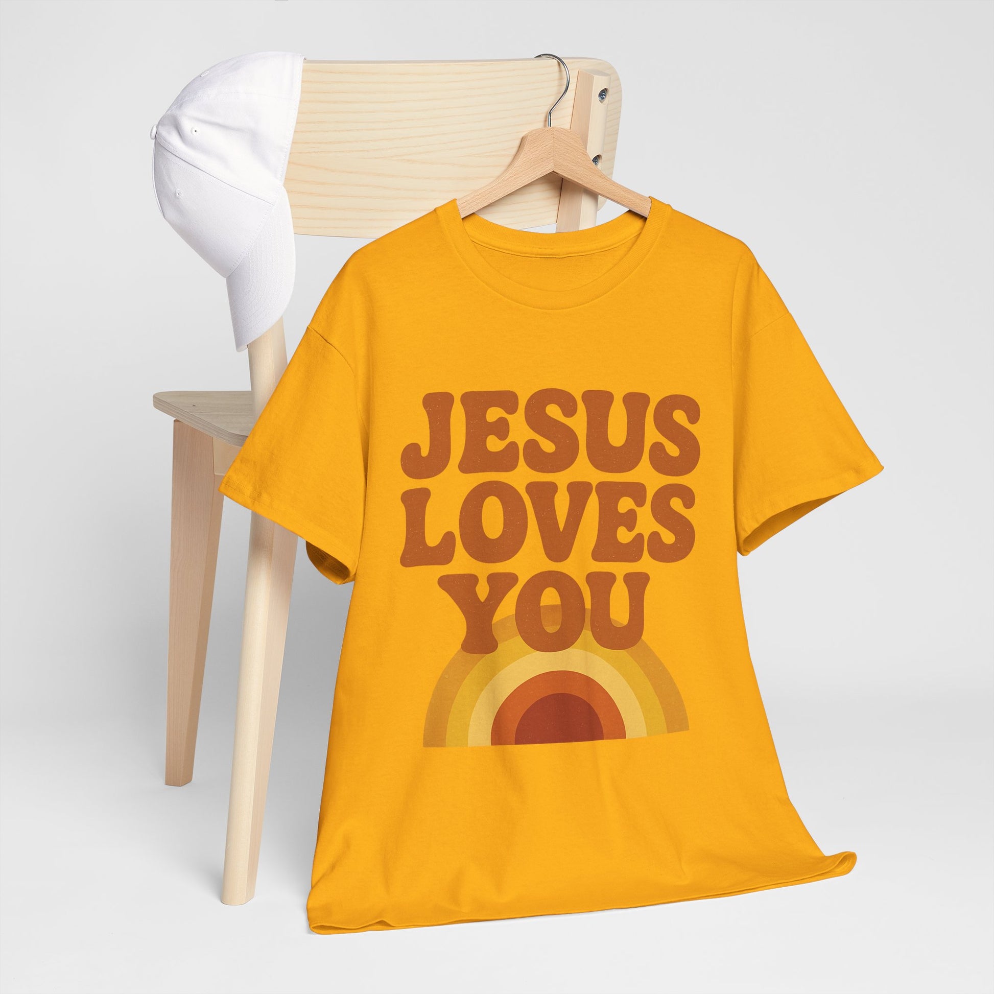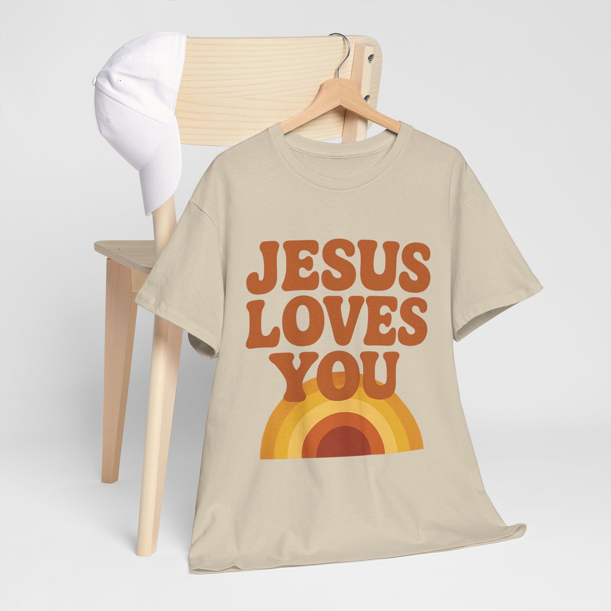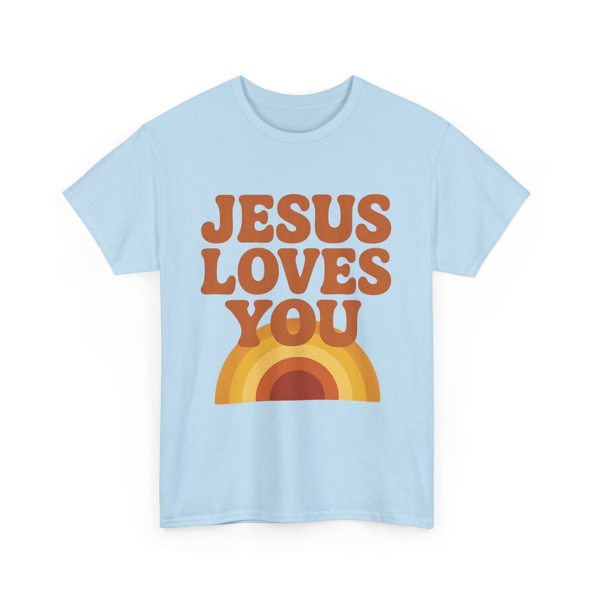 Jesus Loves You Rainbow Unisex Heavy Cotton Tee, Christian T-Shirt, Gift for Believers, Faith Apparel, Casual Wear, Spiritual Top