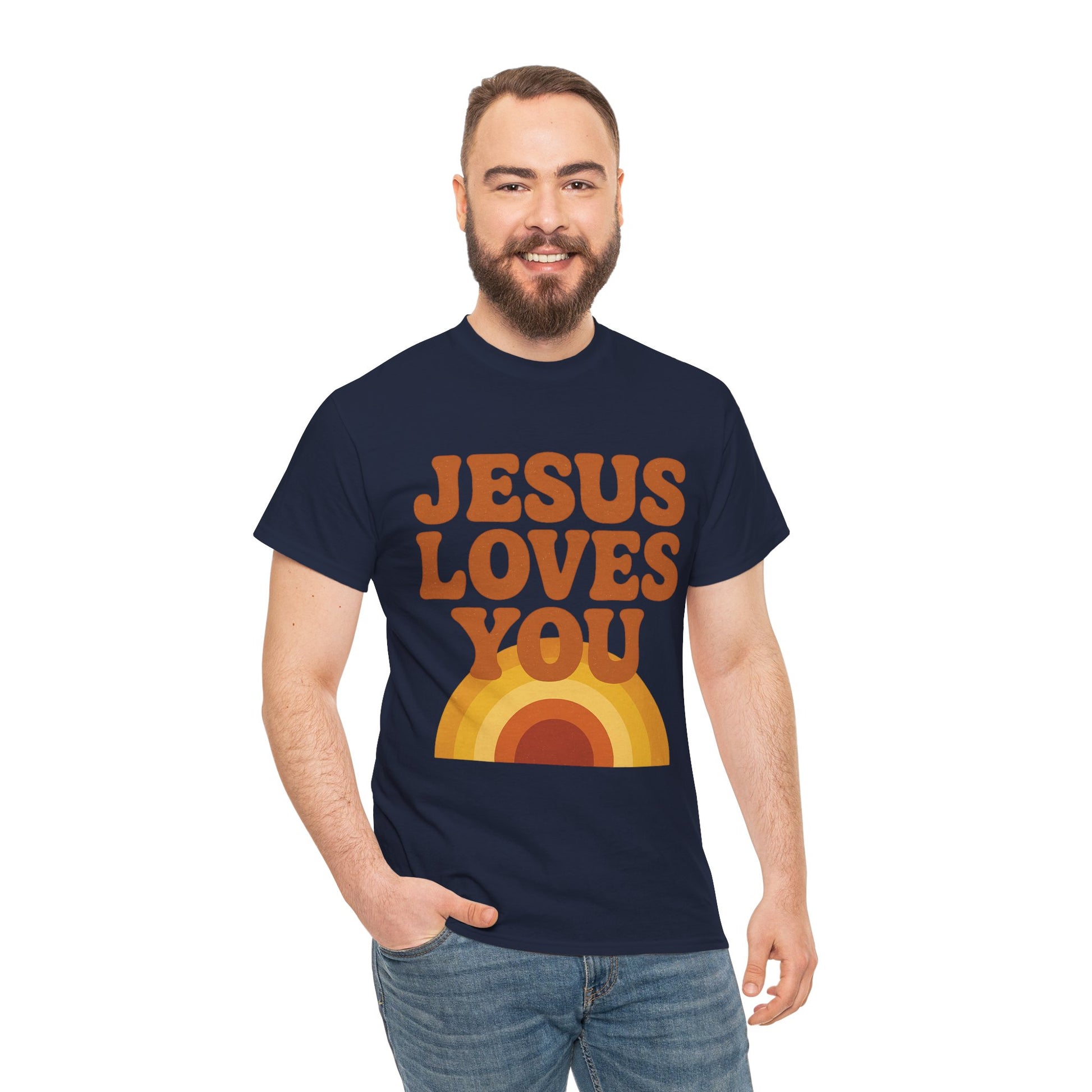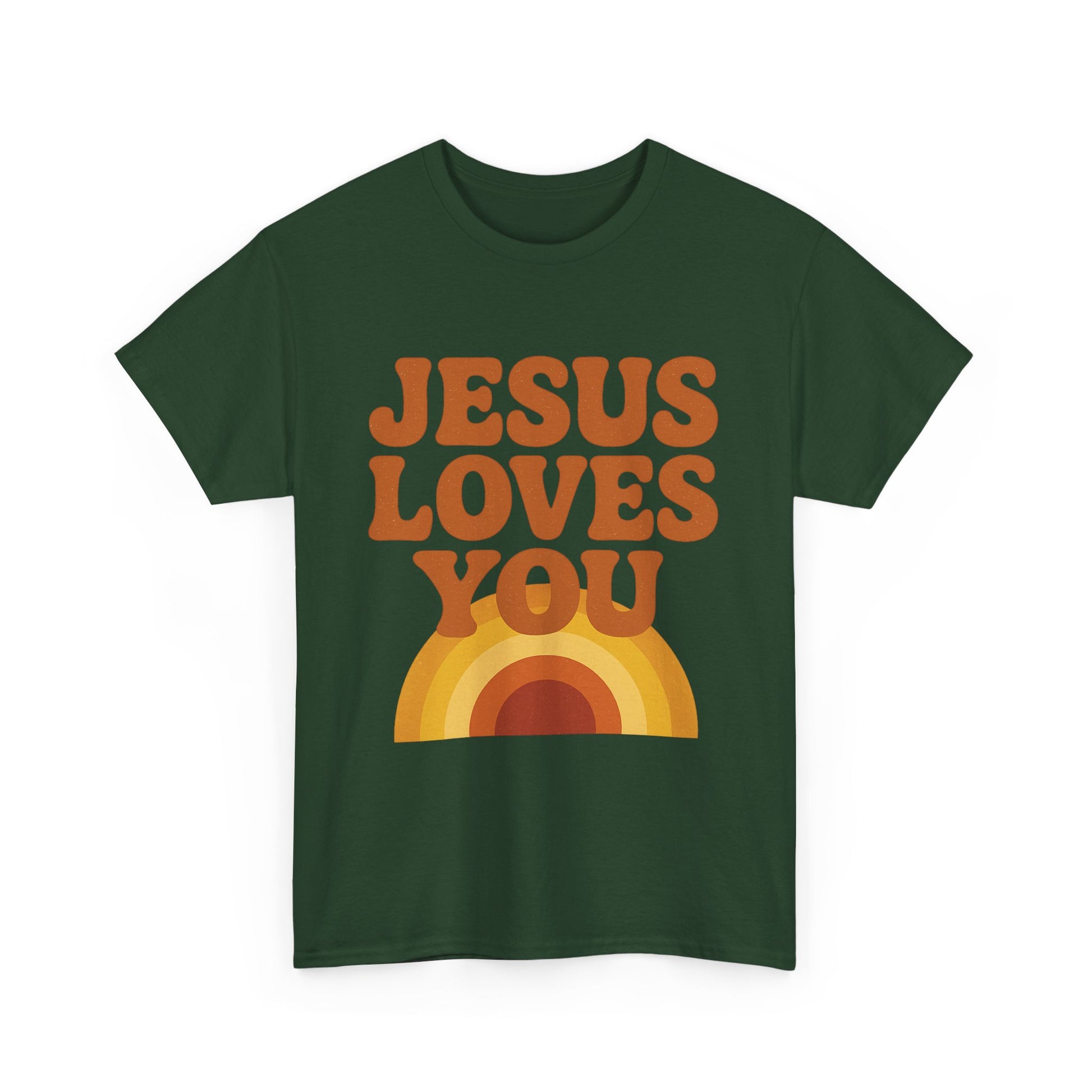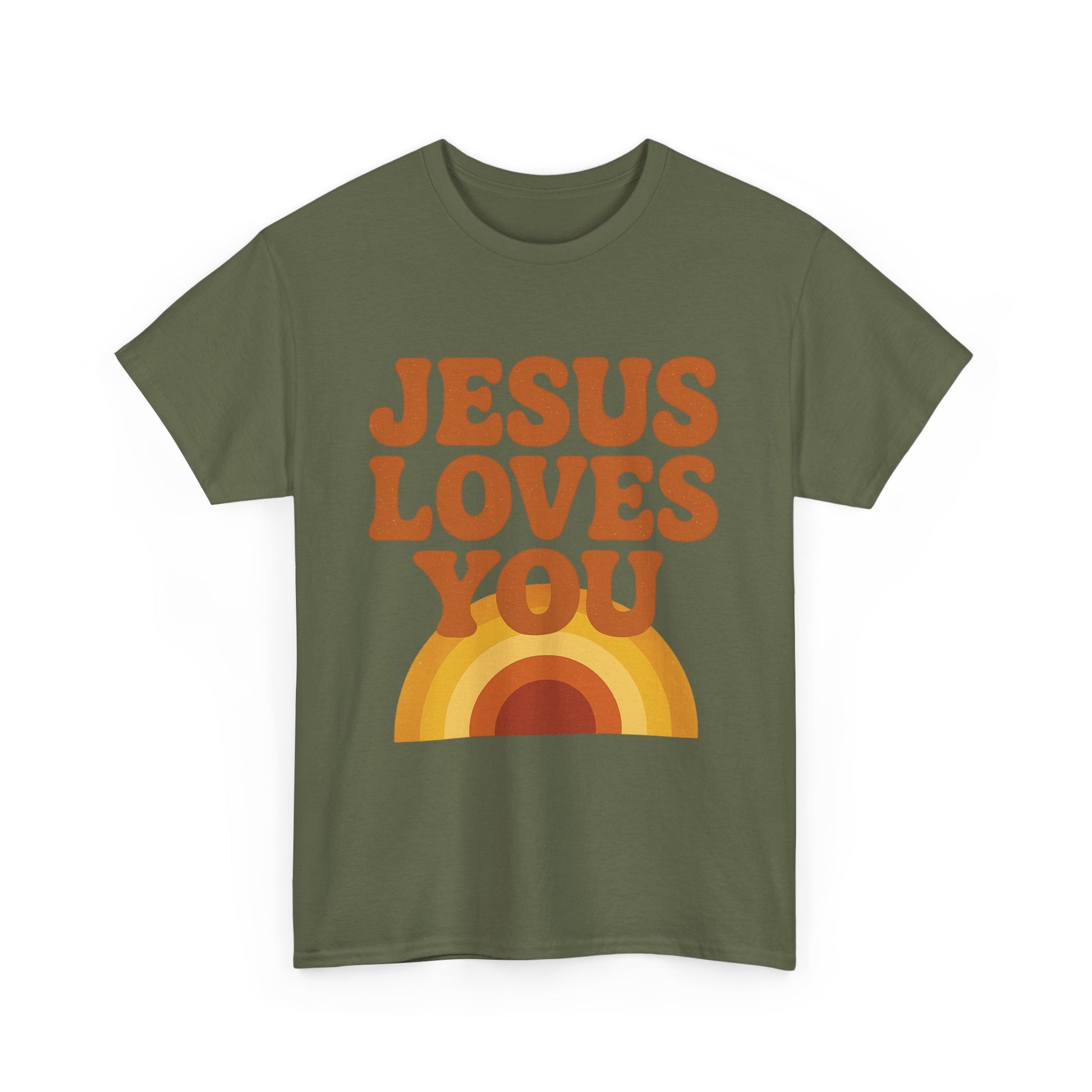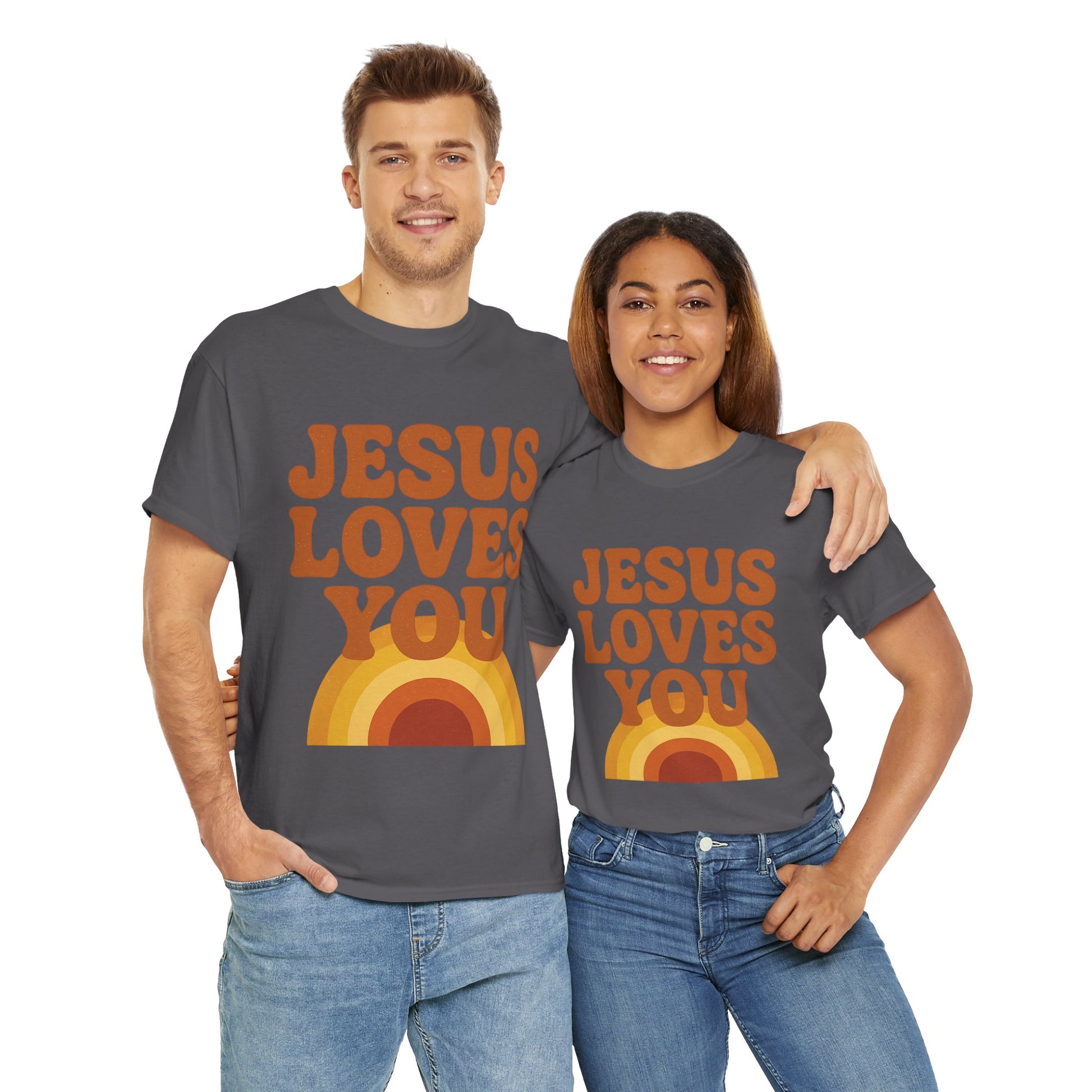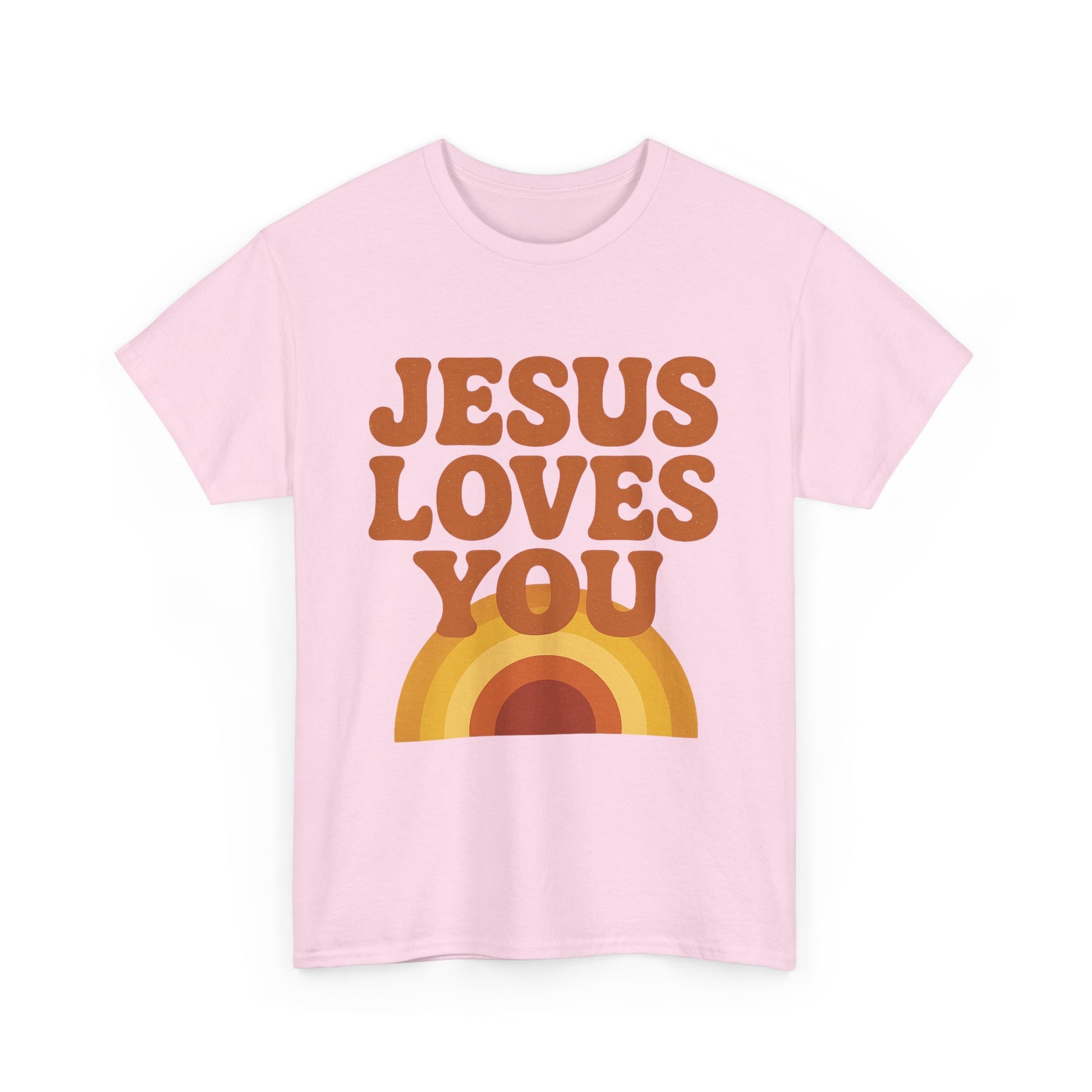 Jesus Loves You Rainbow Unisex Heavy Cotton Tee, Christian T-Shirt, Gift for Believers, Faith Apparel, Casual Wear, Spiritual Top