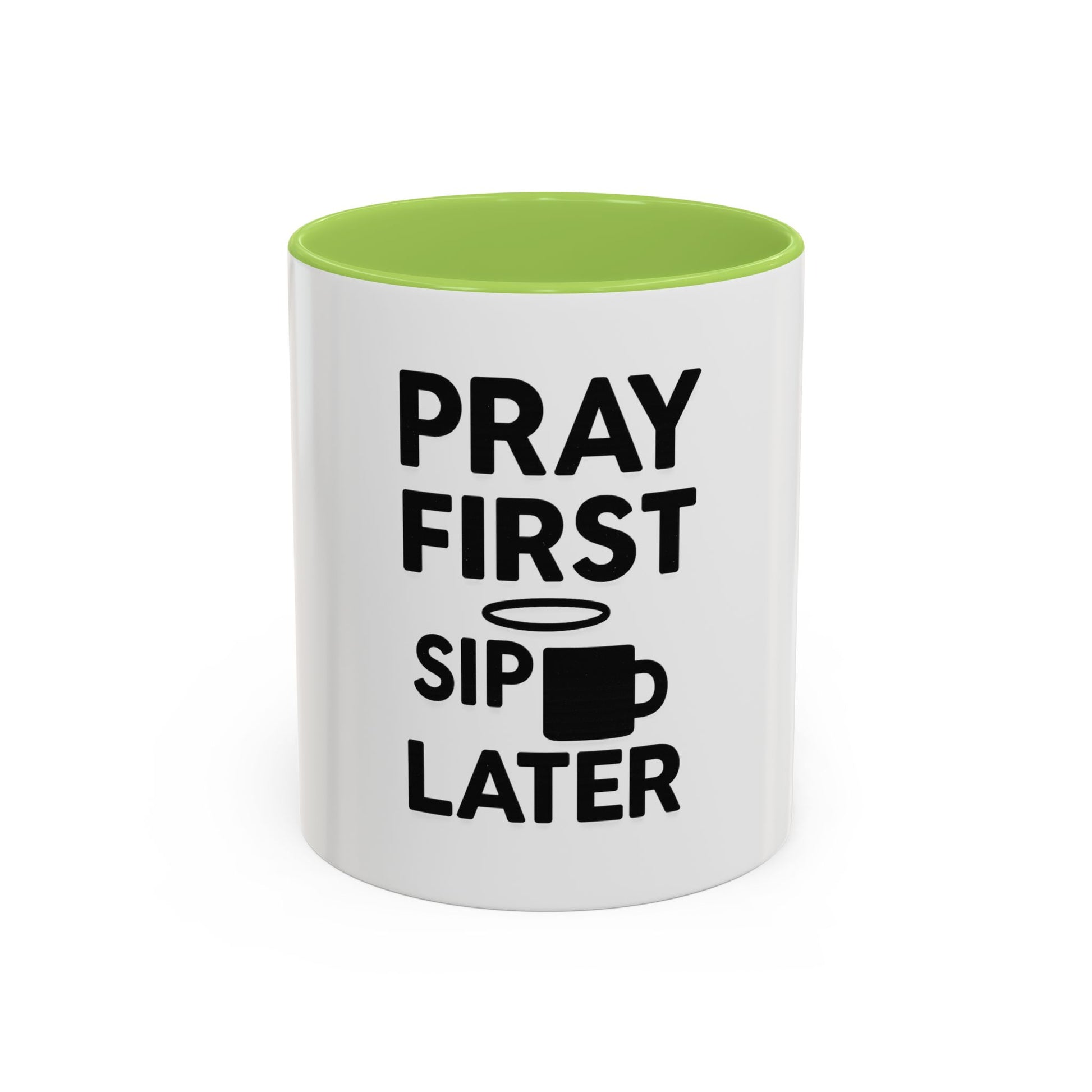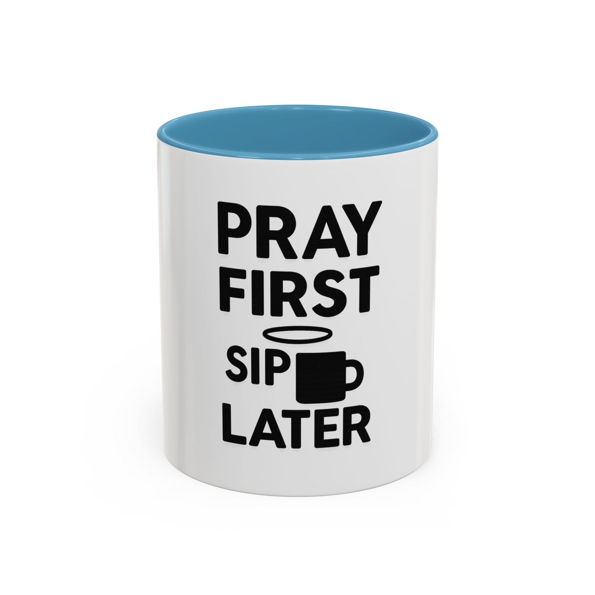 Pray First, Sip Later Mug – Christian Morning Reminder